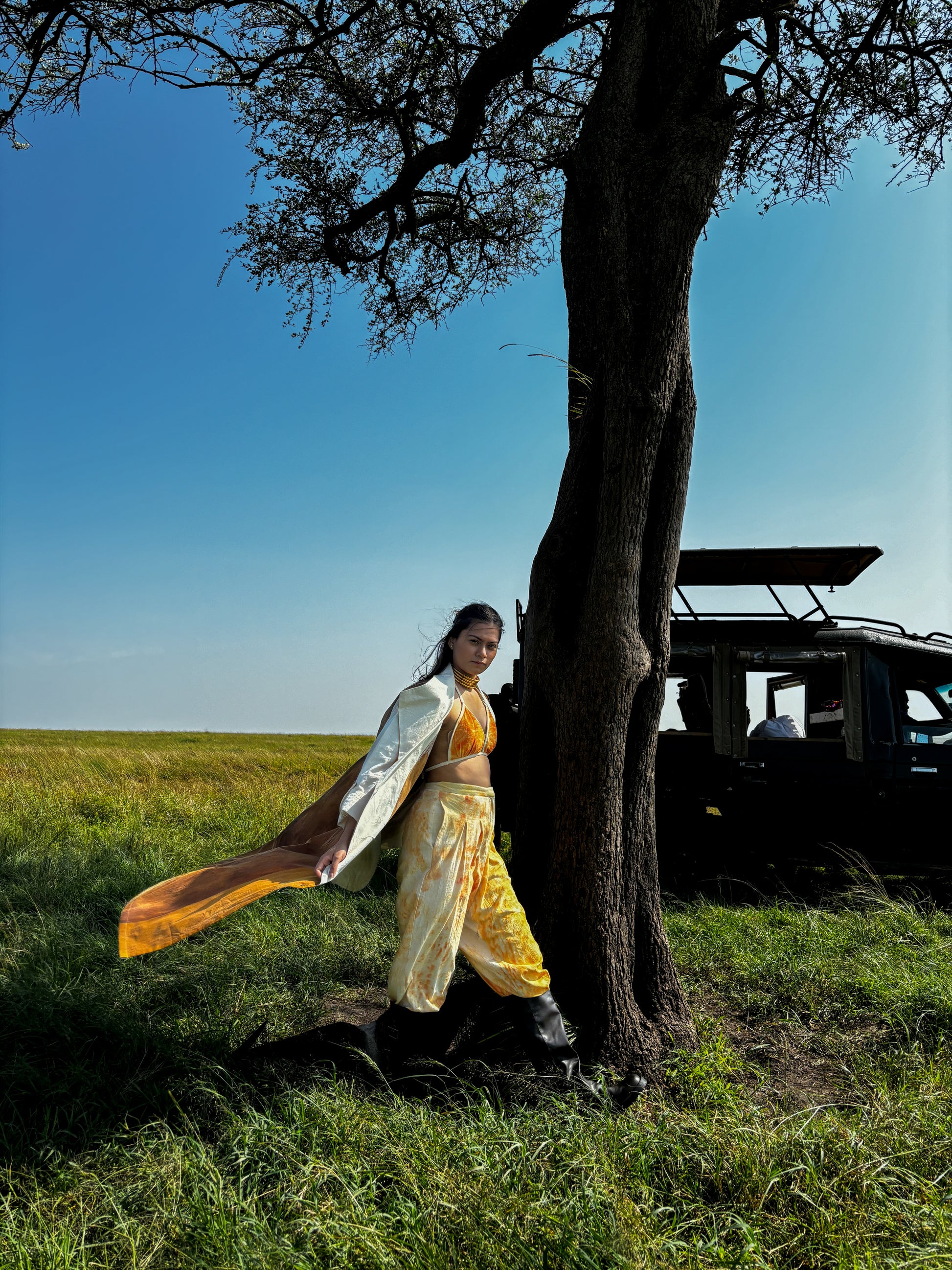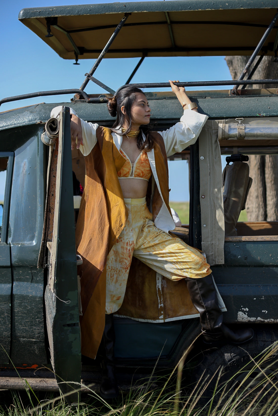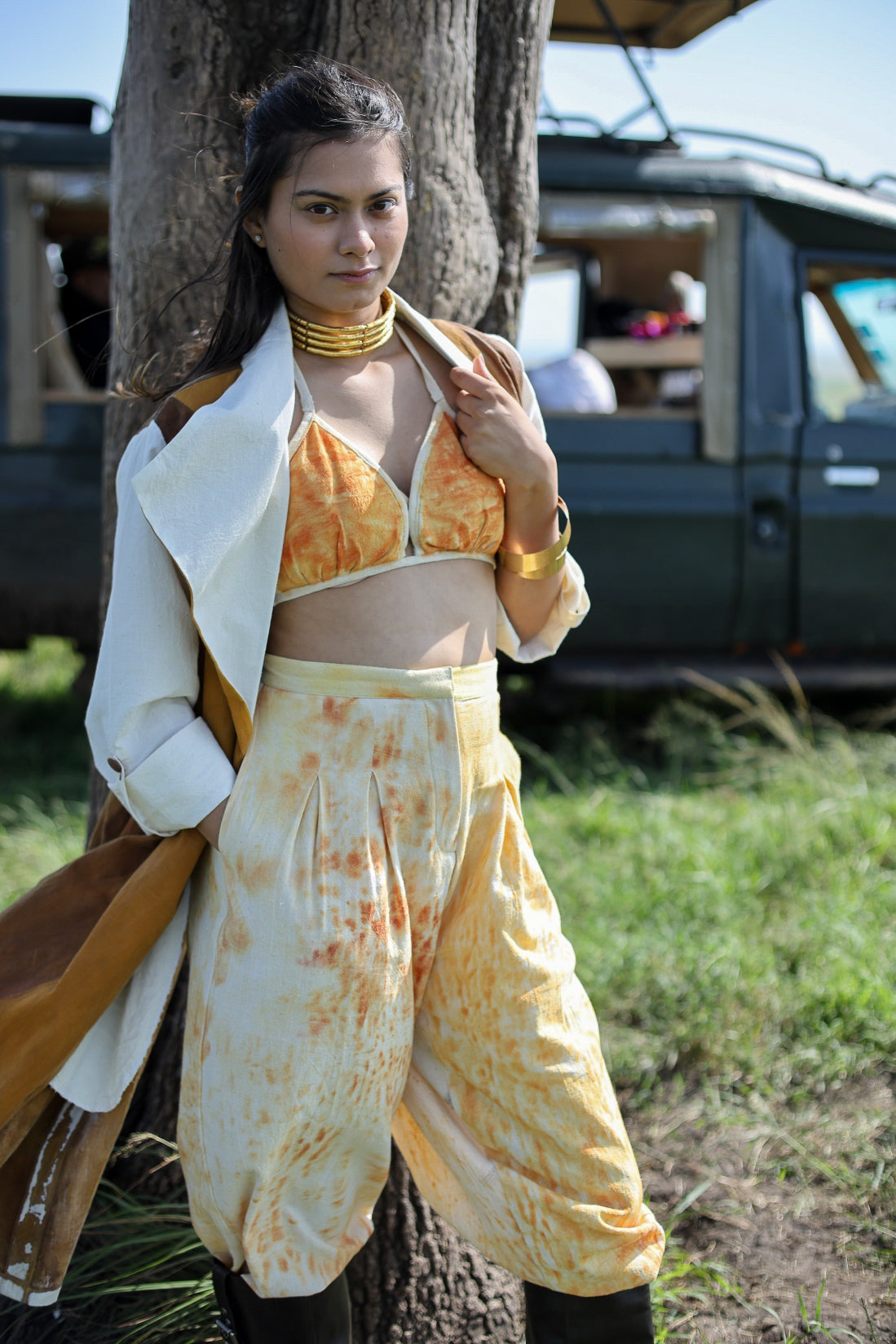 Elevate your style with our hand-painted high-waisted pants, inspired by the vibrant hues of the wilderness. Each pair is a unique work of art, featuring abstract patterns in warm tones that evoke the raw beauty of a tiger’s coat. The high-waisted design flatters the silhouette while offering comfort and ease of movement. Perfect for those who seek a blend of artistry and fashion, these pants are ideal for making a bold statement, whether you're exploring new terrains or simply stepping out in style.